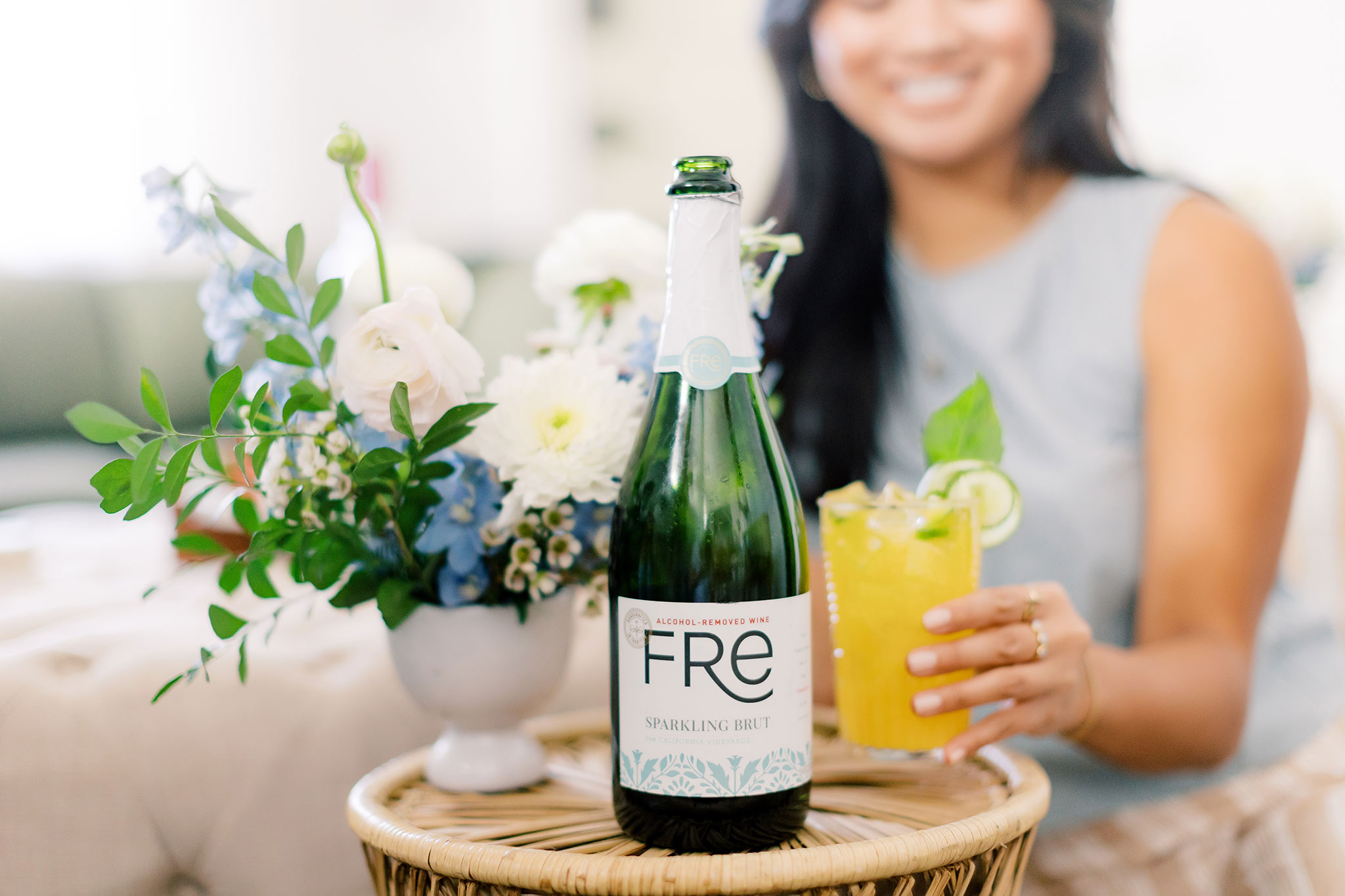 In a cocktail shaker, combine all juices and simple syrup. Fill with ice and shake until combined. Fill a glass with ice and pour in the juices. Top with 2 oz FRE Sparkling Brut and garnish with lime and basil leaves. Cheers and enjoy!